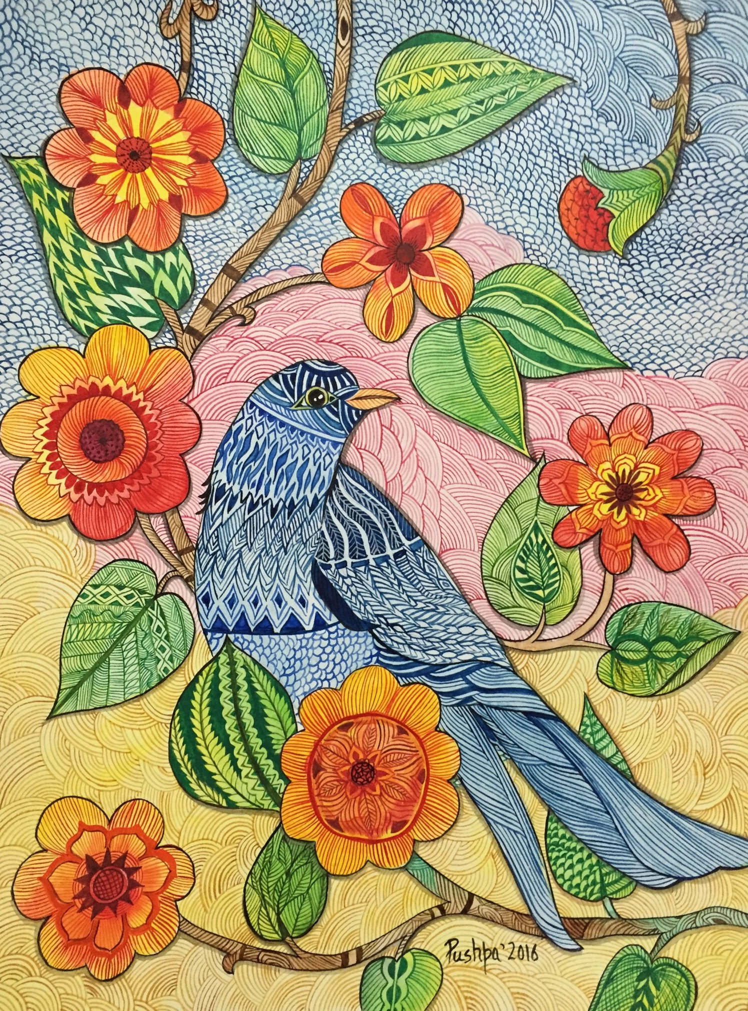 • Blue bird and flowers